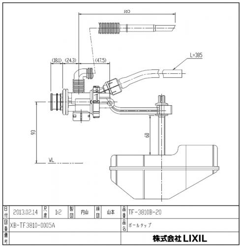 TF-3810B-20 ボールタップ DT-3810タイプ(手洗有)用 トイレ部品 LIXIL INAX