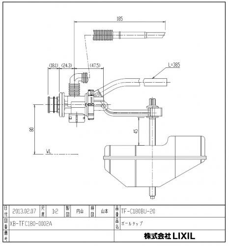 TF-C180BU-20 ボールタップ(手洗あり用) DT-C180Uタイプ用 トイレ部品 LIXIL INAX