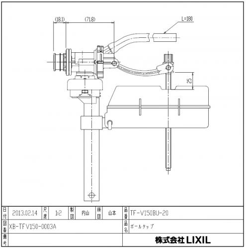 TF-V150BU-20 ボールタップ(手洗なし用) DT-B150GU、DT-V150U、DT-V150MU 他用 トイレ部品 LIXIL INAX