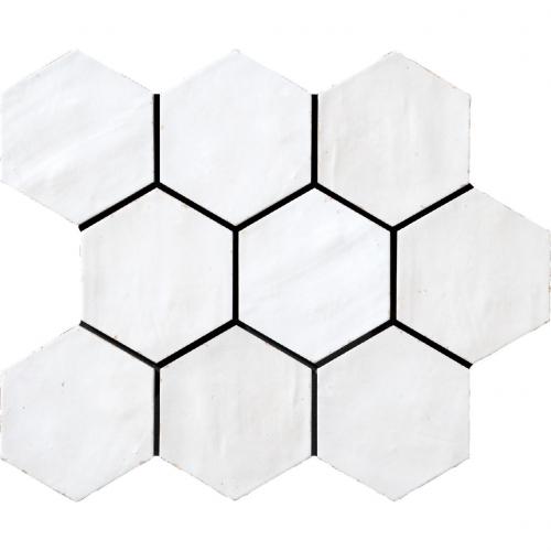 モロッコの伝統的なゼリージュ・タイルをモチーフに、流行のボタニカル柄と六角形を加えて現代的な使い方を提案しています。