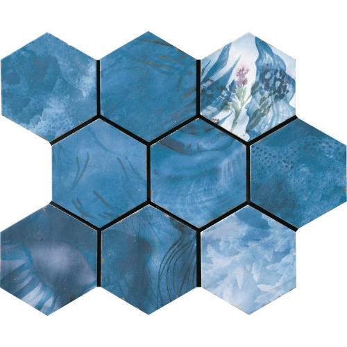 モロッコの伝統的なゼリージュ・タイルをモチーフに、流行のボタニカル柄と六角形を加えて現代的な使い方を提案しています。